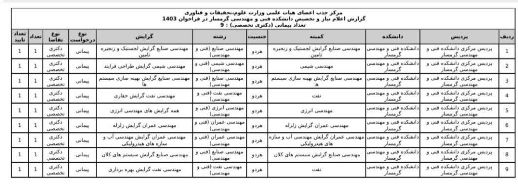یادآور میشود؛ قبل از مشاهده اعلام نیازها میبایست هر یک از متقاضیان آخرین مدرک تحصیلی خود را در بخش رزومه ثبت کنند تا سامانه، اعلام نیازهای متناظر با سطح مدرک تحصیلی را نمایش دهد. همچنین به استحضار میرساند امکان عودت وجه ثبت نام به هیچ وجه وجود ندارد لذا قبل از پرداخت، حتما از وجود اعلام نیاز، متناسب با رشته گرایش خود اطمینان حاصل نمایید. توصیه میشود متقاضیان محترم قبل از انتخاب نهایی شرایط عمومی و اختصاصی انتخابهای خود را حتماً مطالعه نمایند.
