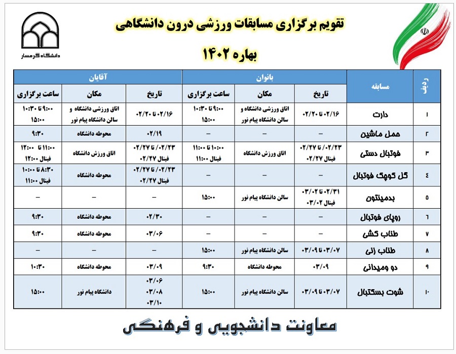 برگزاری مسابقات درون دانشگاهی دانشجویان /کارکنان/  استادان