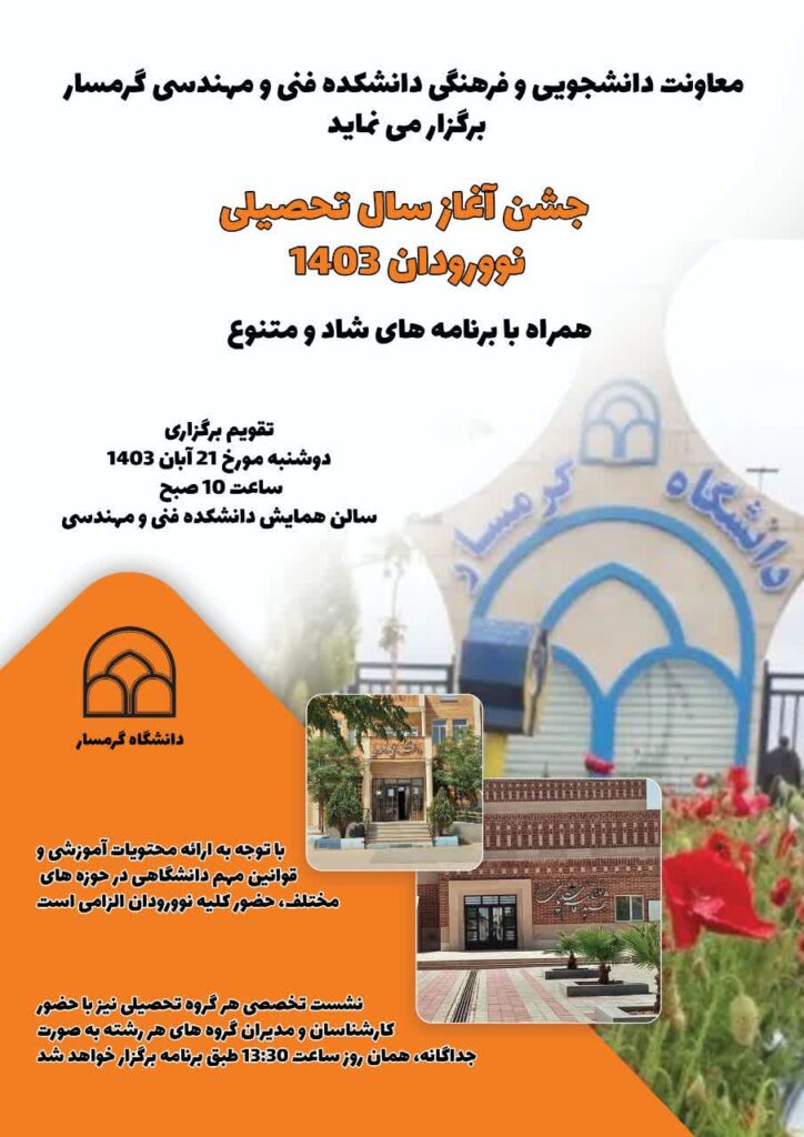 معاونت دانشجویی و فرهنگی دانشکده فنی و مهندسی گرمسار برگزار می نماید: