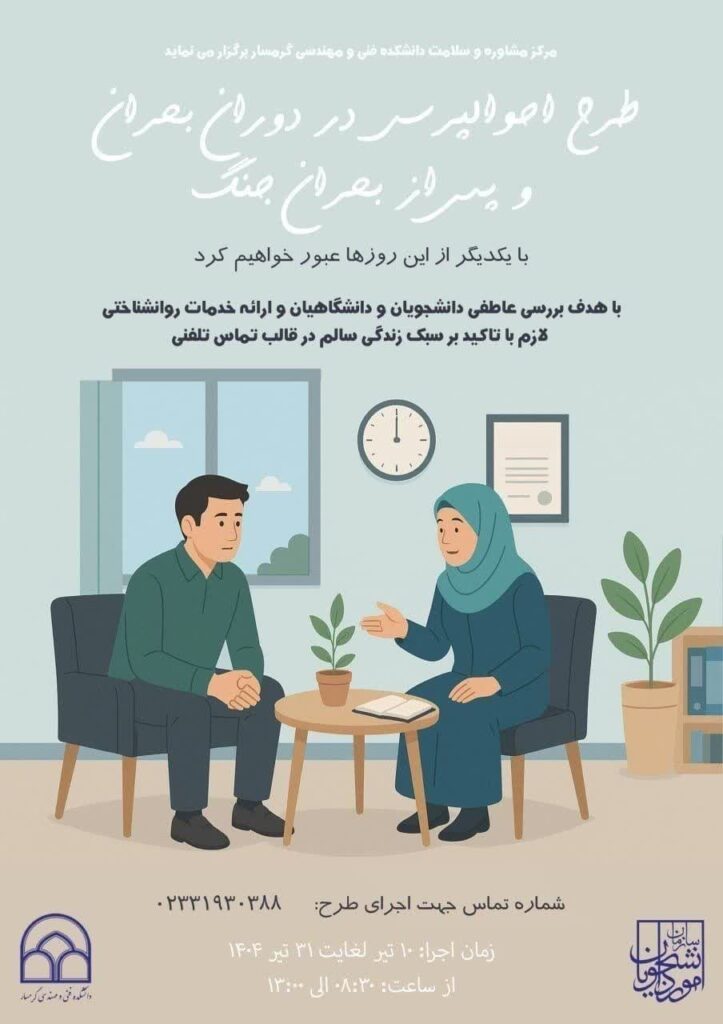 با هدف بررسی عاطفی دانشجویان و دانشگاهیان و ارائه خدمات روان شناختی لازم با تاکید بر سبک زندگی سالم در قالب تماس تلفنی