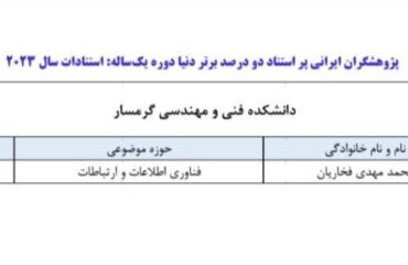 حضور یک عضو هیئت علمی دانشکده فنی و مهندسی گرمسار در فهرست ۲ درصد دانشمندان برتر جهان در سال 2023