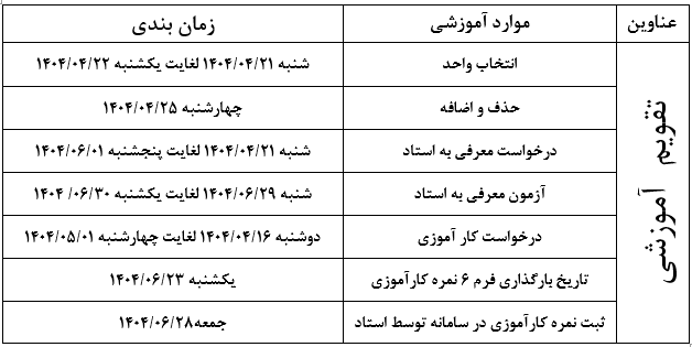 بدینوسیله تقویم آموزشی تابستان 04-1403 جهت اطلاع کلیه دانشجویان دانشگاه اعلام می گردد.