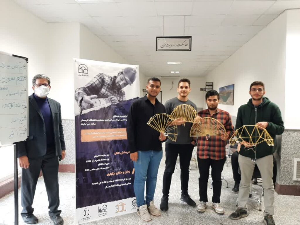 به گزارش روابط عمومی دانشگاه گرمسار،دکتر محمد مهدی فخاریان معاونت دانشجویی و فرهنگی دانشگاه گرمسار ضمن ارائه گزاررش از روند برگزاری این دوره از مسابقات در بخش های مختلف : پل سازه ماکارونی، بتن متخلخل، پل محافظ تخم مرغ EPD و مقاومت فشاری مکعب 5* 5 و در گروه های مختلف دانشجویی با استقبال پرشور دانشجویان برگزار گردید و در پایان از گروه های برگزیده در هر بخش مسابقه با اهدای لوح تقدیر و جوایز ارزنده نقدی تقدیر به عمل آمد.