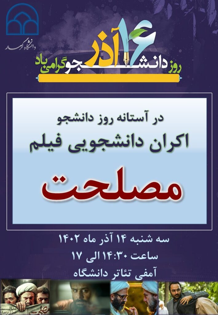 اکران دانشجویی فیلم «مصلحت» ویژه دانشجویان در سالن آمفی تئاتر دانشگاه