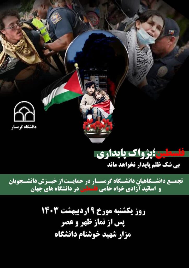 تجمع دانشگاهیان دانشگاه گرمسار در حمایت از خیزش دانشجویان و اساتید آزادی خواه حامی فلسطین در دانشگاه های جهان