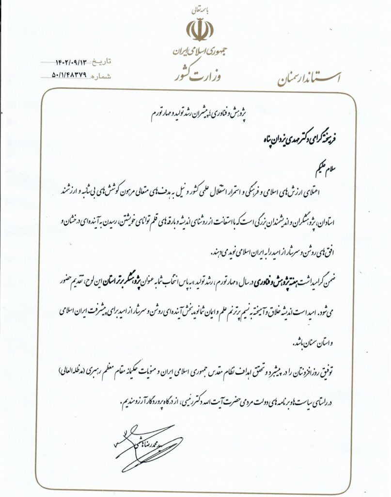 به مناسبت هفته پژوهش و فناوری و همزمان با برگزاری جشنواره تجلیل از محققان و پژوهشگران برتر استان سمنان از 2 پژوهشگر دانشگاه گرمسار با حضور استاندار و دیگر مسئولان دانشگاه ها و دستگاه های اجرایی استان قدر دانی شد.