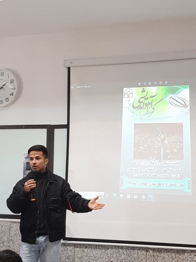 برگزاری کرسی آزاد اندیشی با عنوان: تأثیر مشارکت در انتخابات بر سرنوشت کشور  با حضور  دانشجویان  / کارکنان و استادان