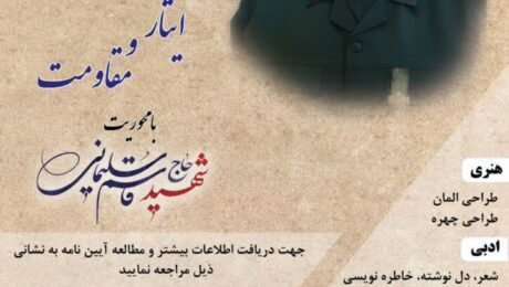 معاونت دانشجویی و فرهنگی دانشگاه گرمسار به مناسبت بزرگداشت سالروز شهادت شهید حاج قاسم سلیمانی برگزار می نماید: سومین یادواره مقاومت و ایثار با محوریت شهید سپهبد حاج قاسم سلیمانی تقویم جشنواره: مهلت ارسال آثار: 12 دی لغایت 12 بهمن 1402 اختتامیه و اعلام نتایج: 24 و 25 بهمن ماه 1402 هم زمان با